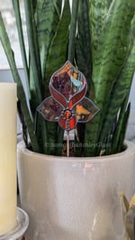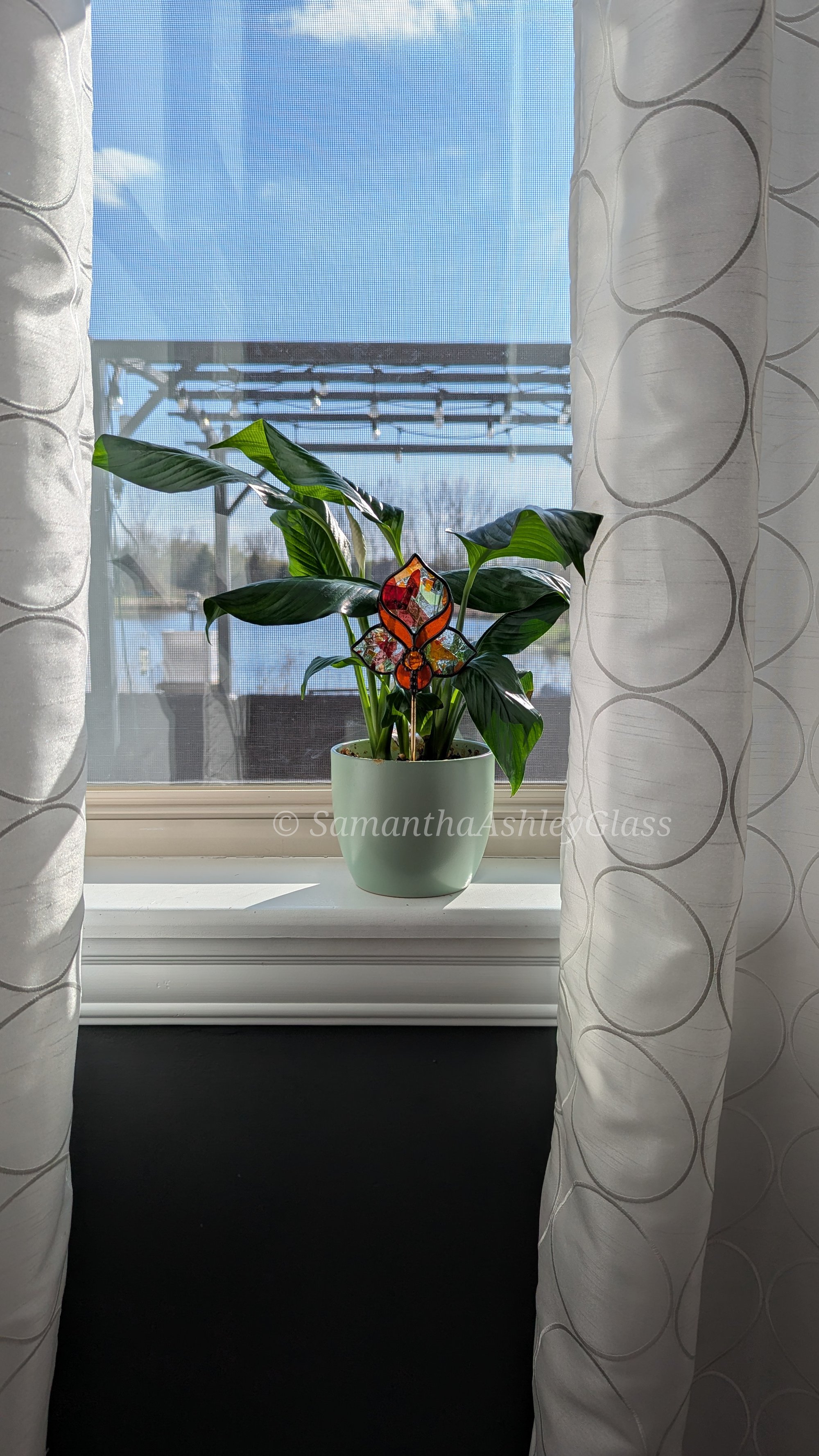 **This item contains lead. The wax finishing seals the lead and creates a protective barrier to slow down corrosion/oxidation. You should periodically rewax/buff stained glass suncatchers. Lead can be harmful only if ingested - keep out of reach of children (who tend to put things in their mouths), and wash hands after handling.**