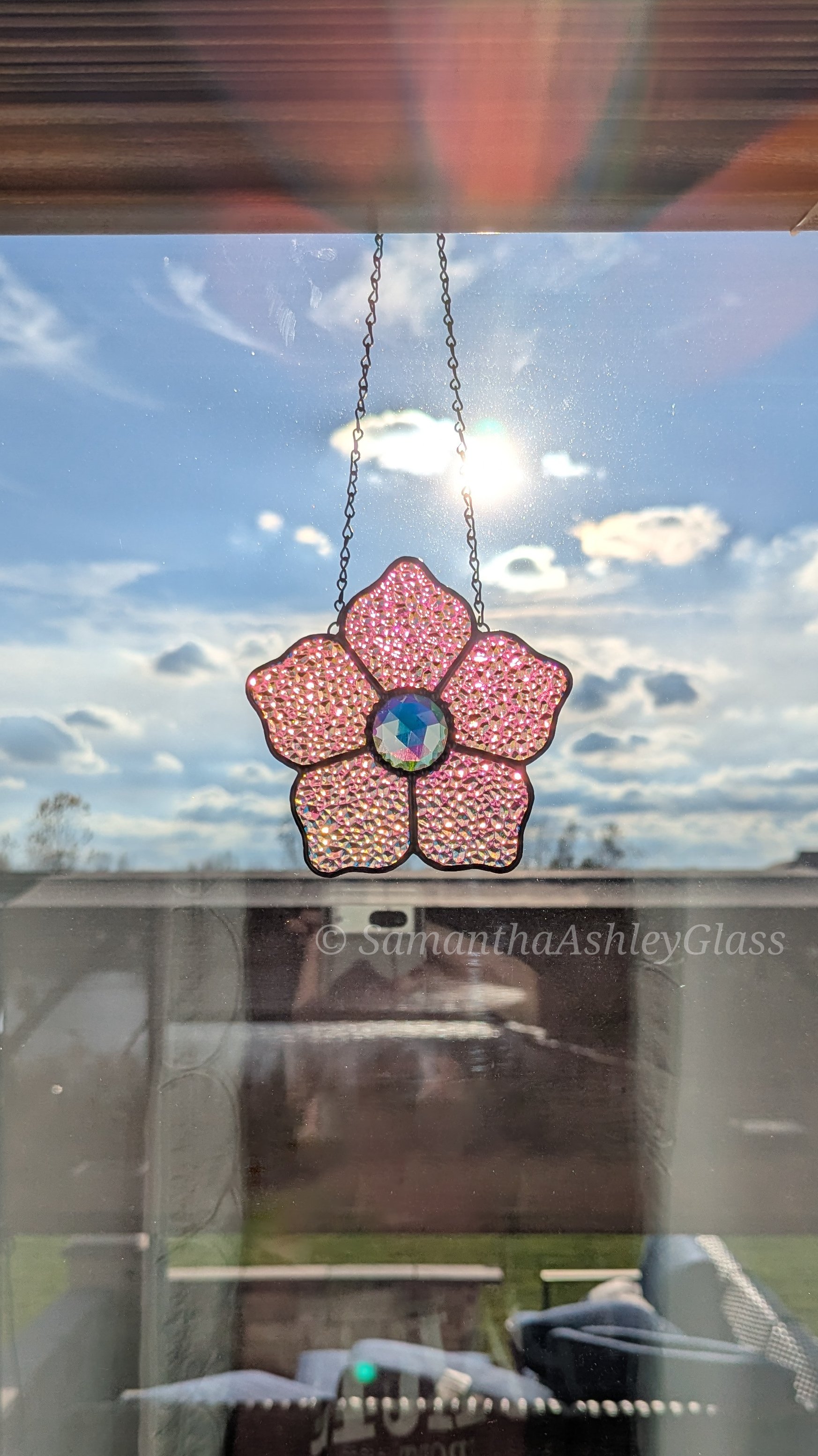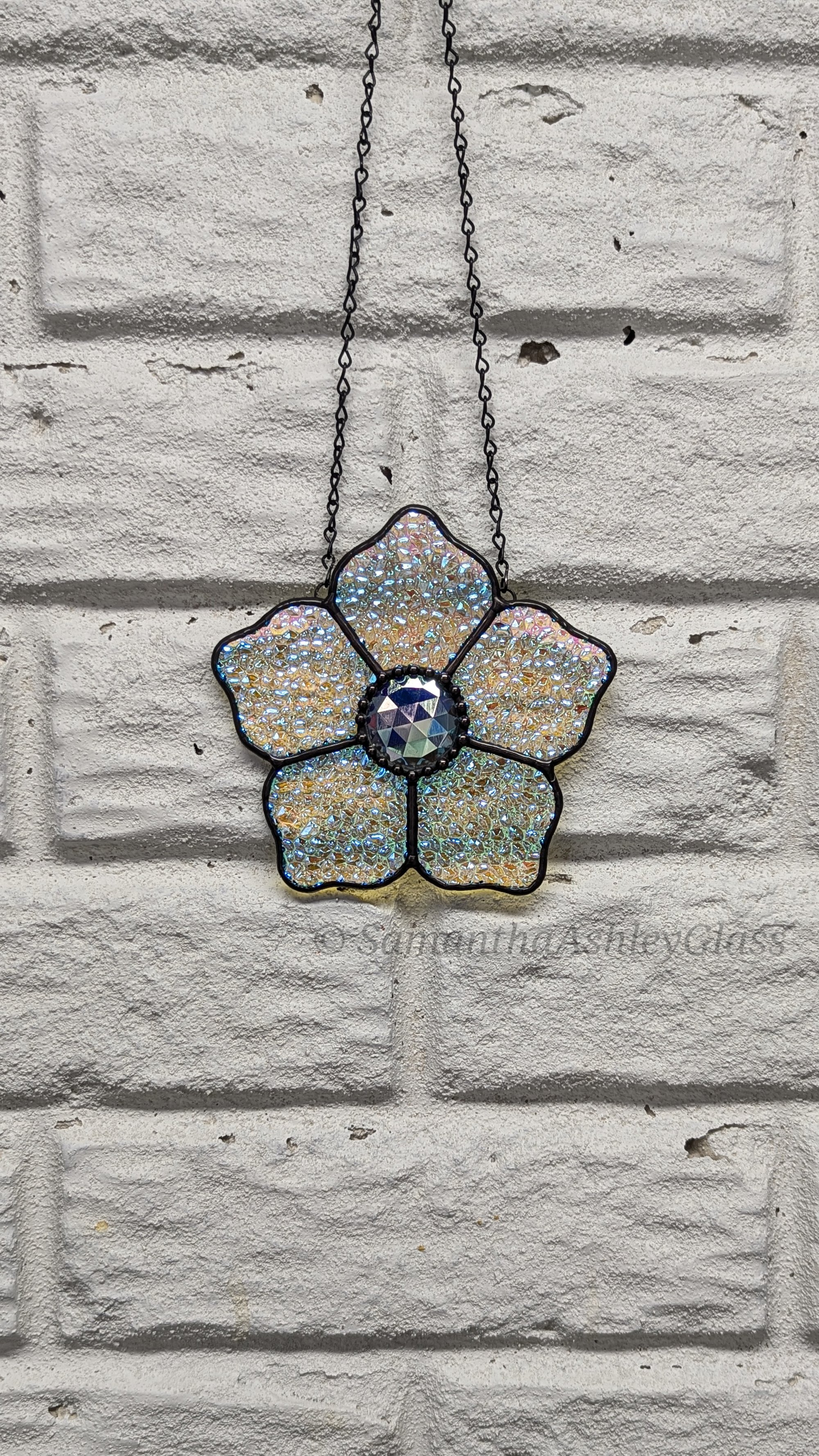 **This item contains lead. The wax finishing seals the lead and creates a protective barrier to slow down corrosion/oxidation. You should periodically rewax/buff stained glass suncatchers. Lead can be harmful only if ingested - keep out of reach of children (who tend to put things in their mouths), and wash hands after handling.**