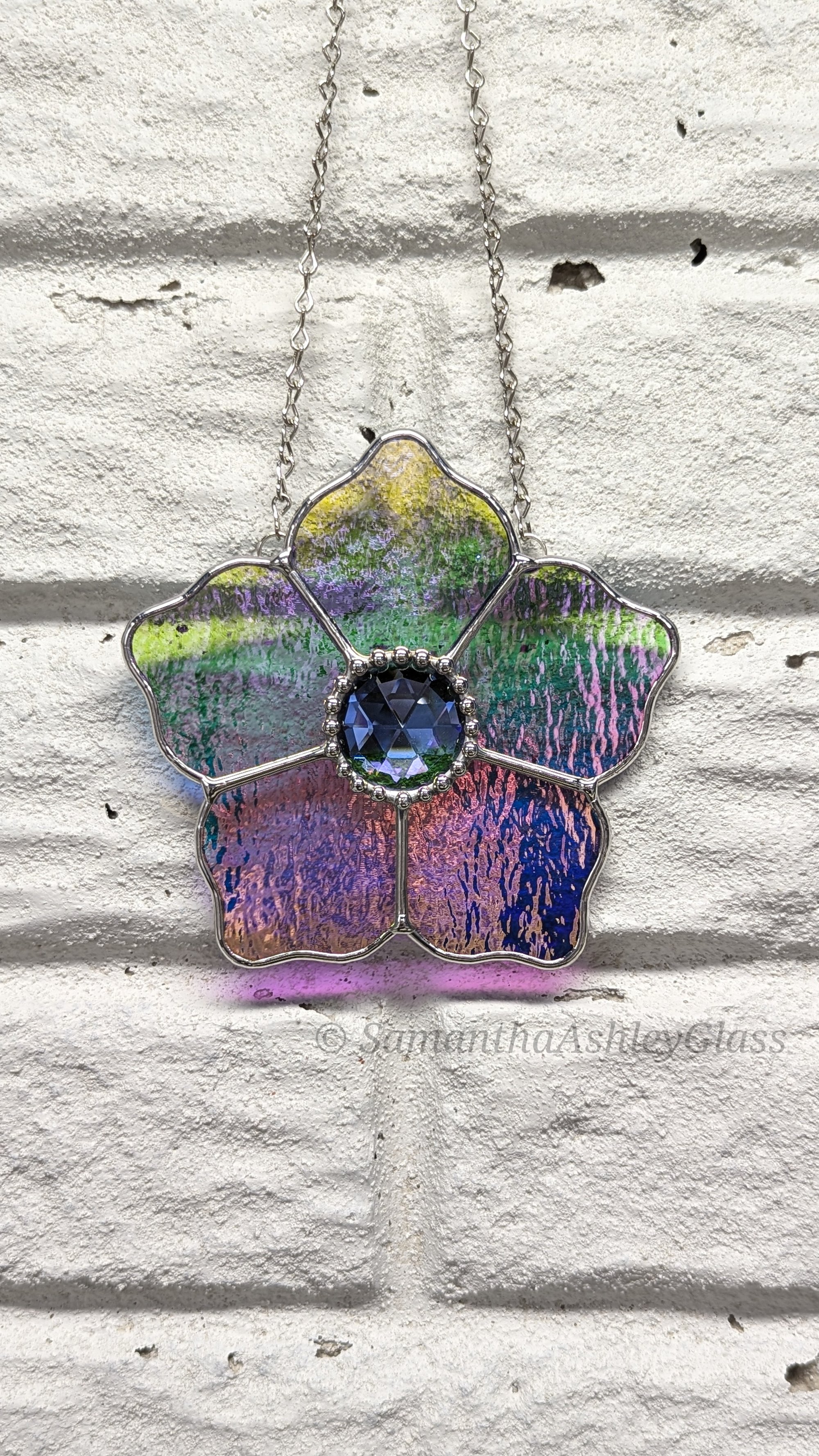 **This item contains lead. The wax finishing seals the lead and creates a protective barrier to slow down corrosion/oxidation. You should periodically rewax/buff stained glass suncatchers. Lead can be harmful only if ingested - keep out of reach of children (who tend to put things in their mouths), and wash hands after handling.**