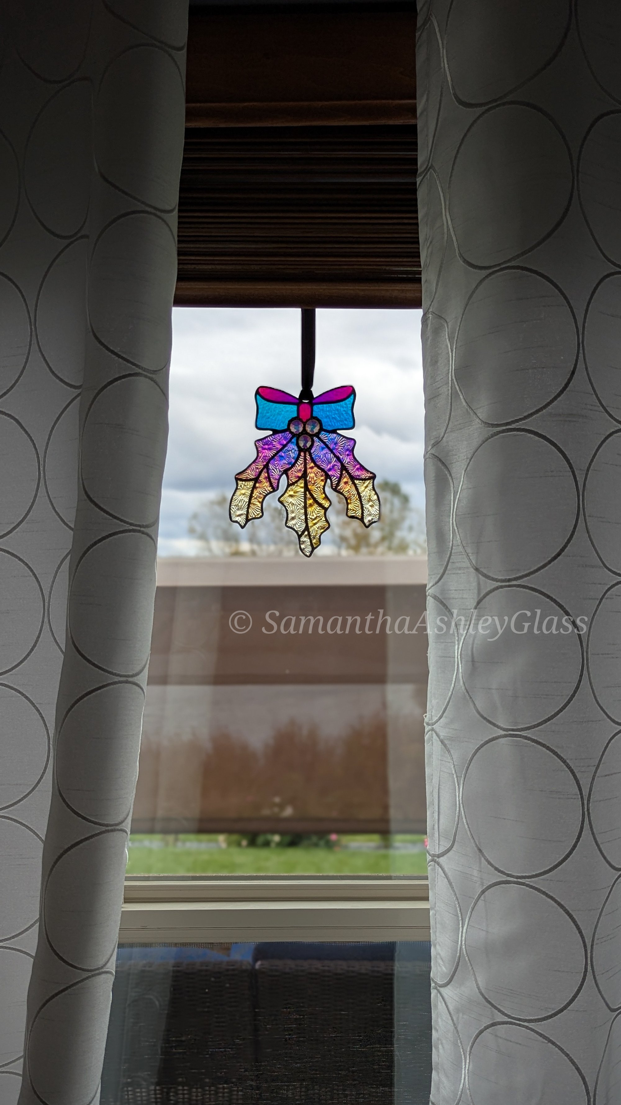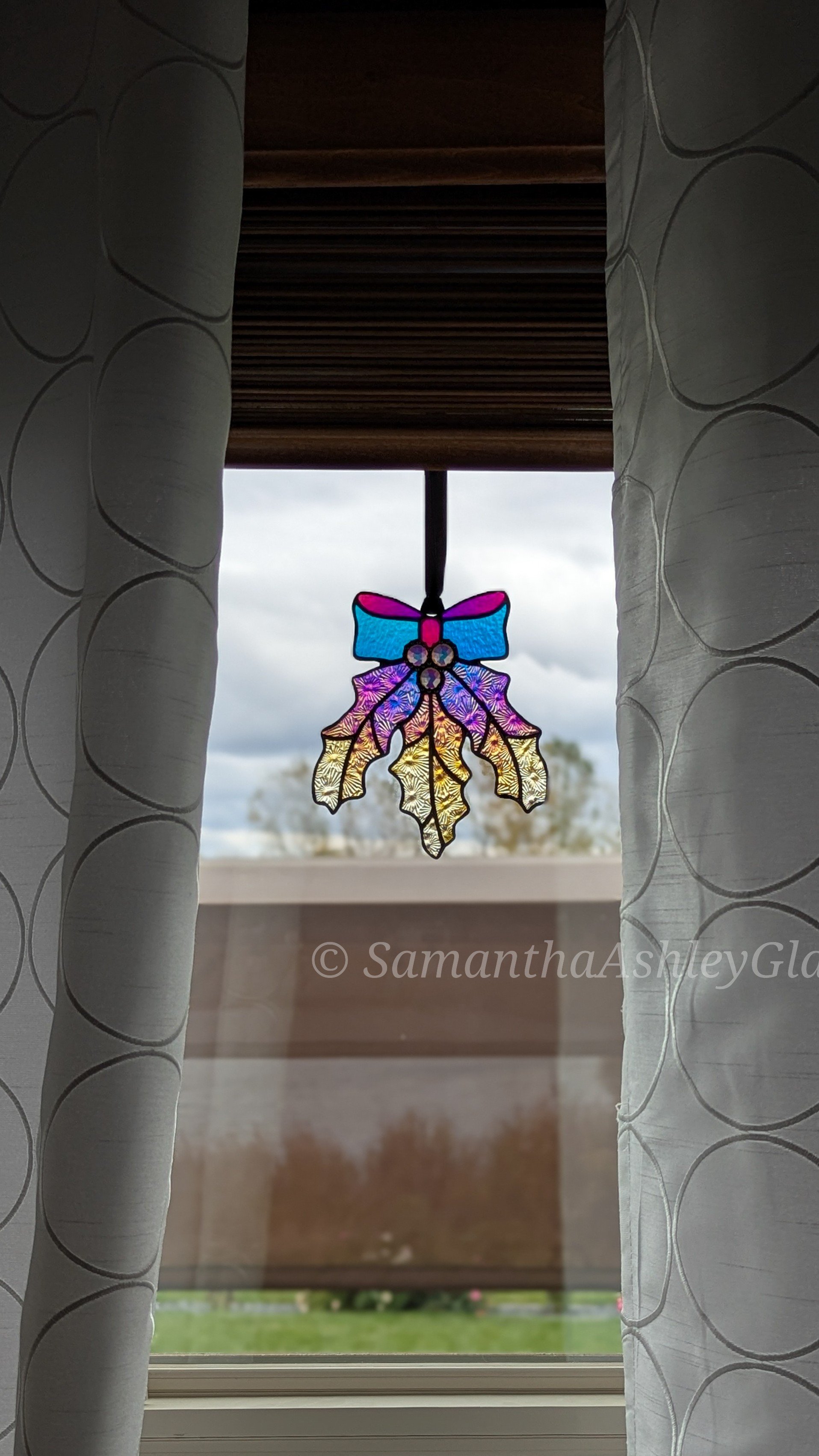 **This item contains lead. The wax finishing seals the lead and creates a protective barrier to slow down corrosion/oxidation. You should periodically rewax/buff stained glass suncatchers. Lead can be harmful only if ingested - keep out of reach of children (who tend to put things in their mouths), and wash hands after handling.**