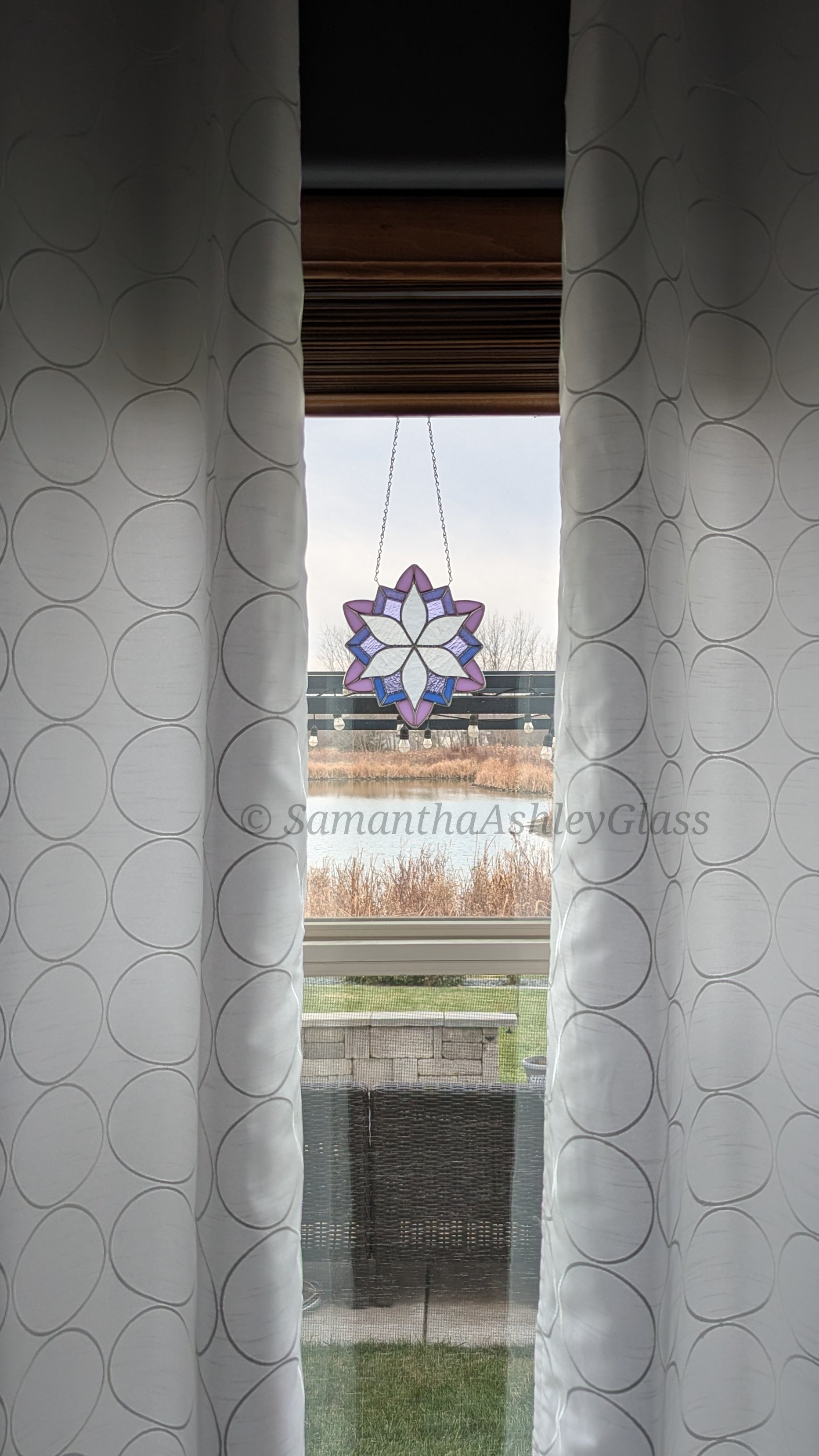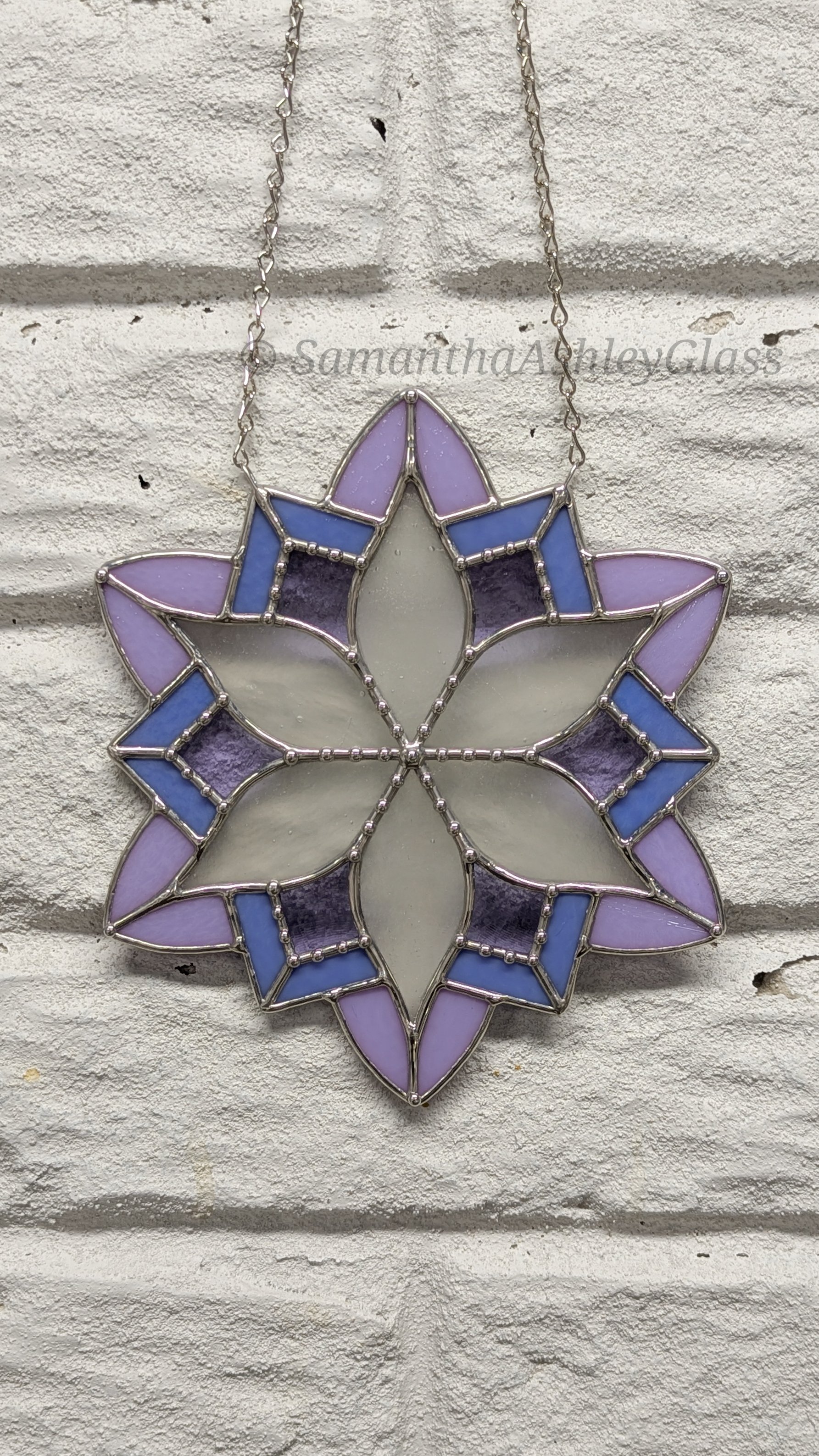 **This item contains lead. The wax finishing seals the lead and creates a protective barrier to slow down corrosion/oxidation. You should periodically rewax/buff stained glass suncatchers. Lead can be harmful only if ingested - keep out of reach of children (who tend to put things in their mouths), and wash hands after handling.**