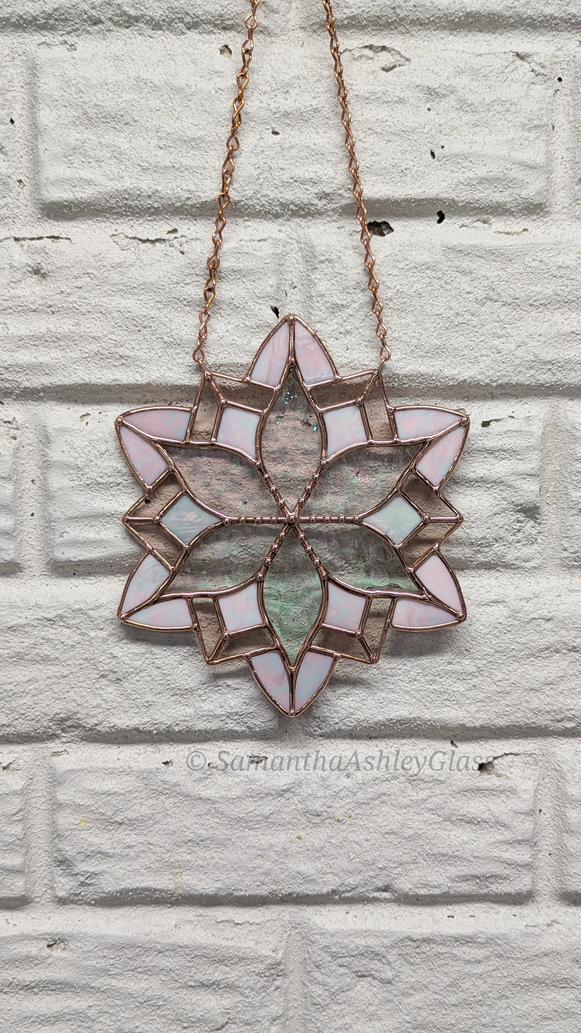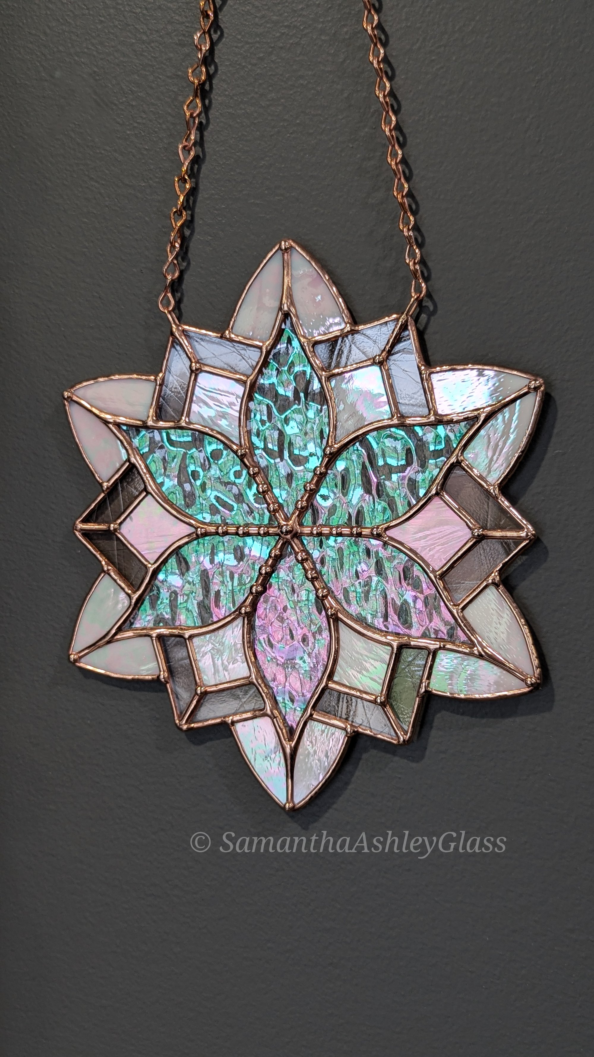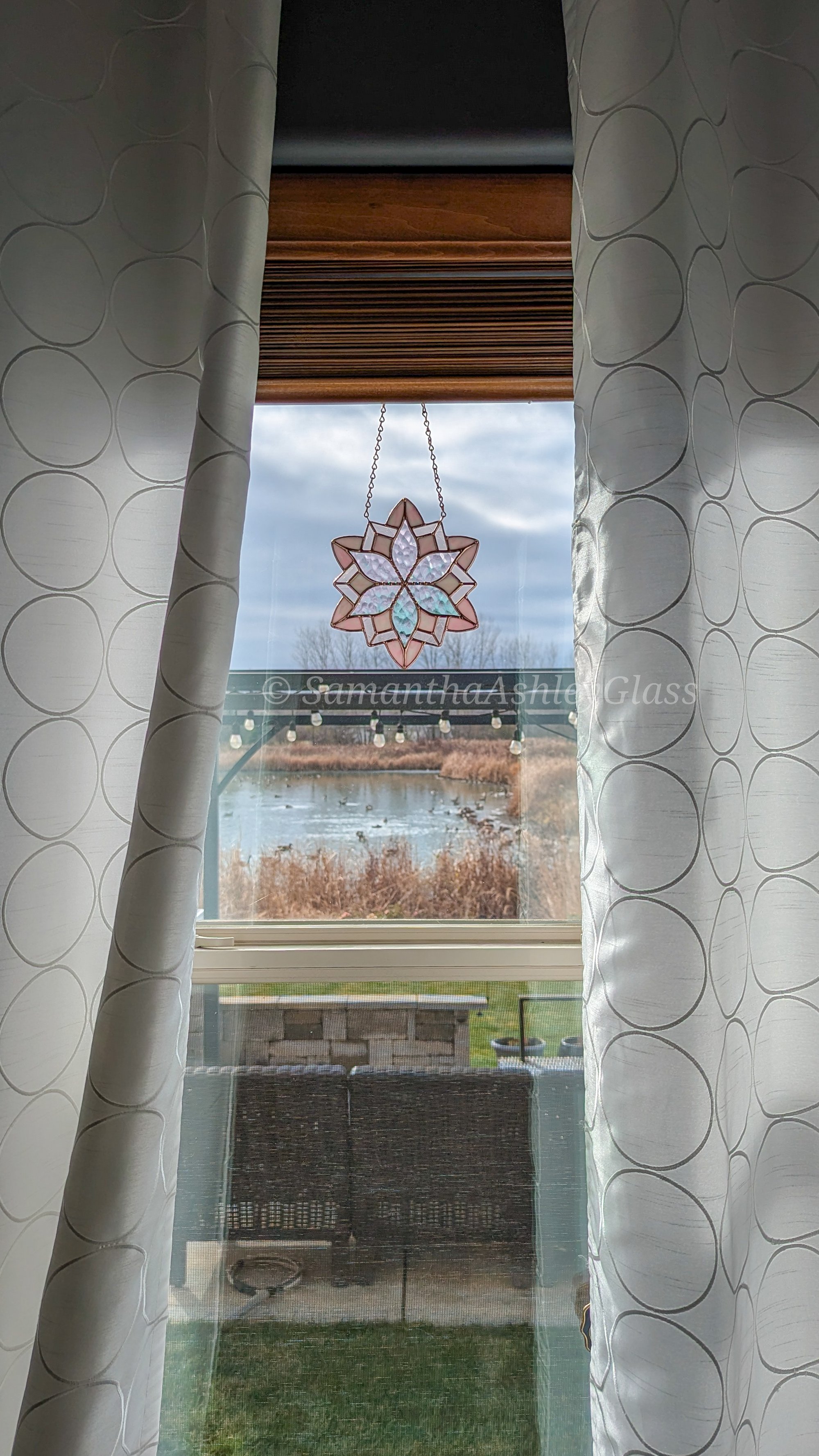 **This item contains lead. The wax finishing seals the lead and creates a protective barrier to slow down corrosion/oxidation. You should periodically rewax/buff stained glass suncatchers. Lead can be harmful only if ingested - keep out of reach of children (who tend to put things in their mouths), and wash hands after handling.**